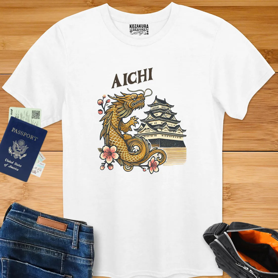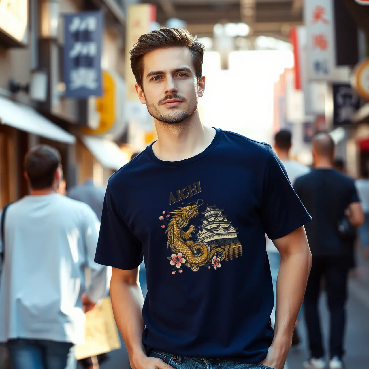 Step into the heart of Japan with this minimalist design showcasing Nagoya Castle, complete with its golden shachihoko ornaments. Inspired by the rich history and artistry of Aichi Prefecture, this t-shirt is perfect for travelers, history buffs, and cultural enthusiasts alike.