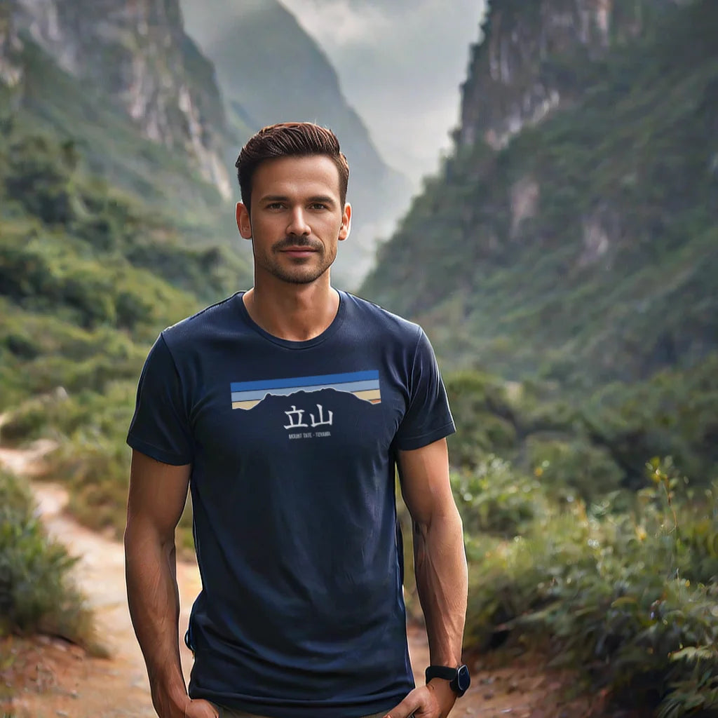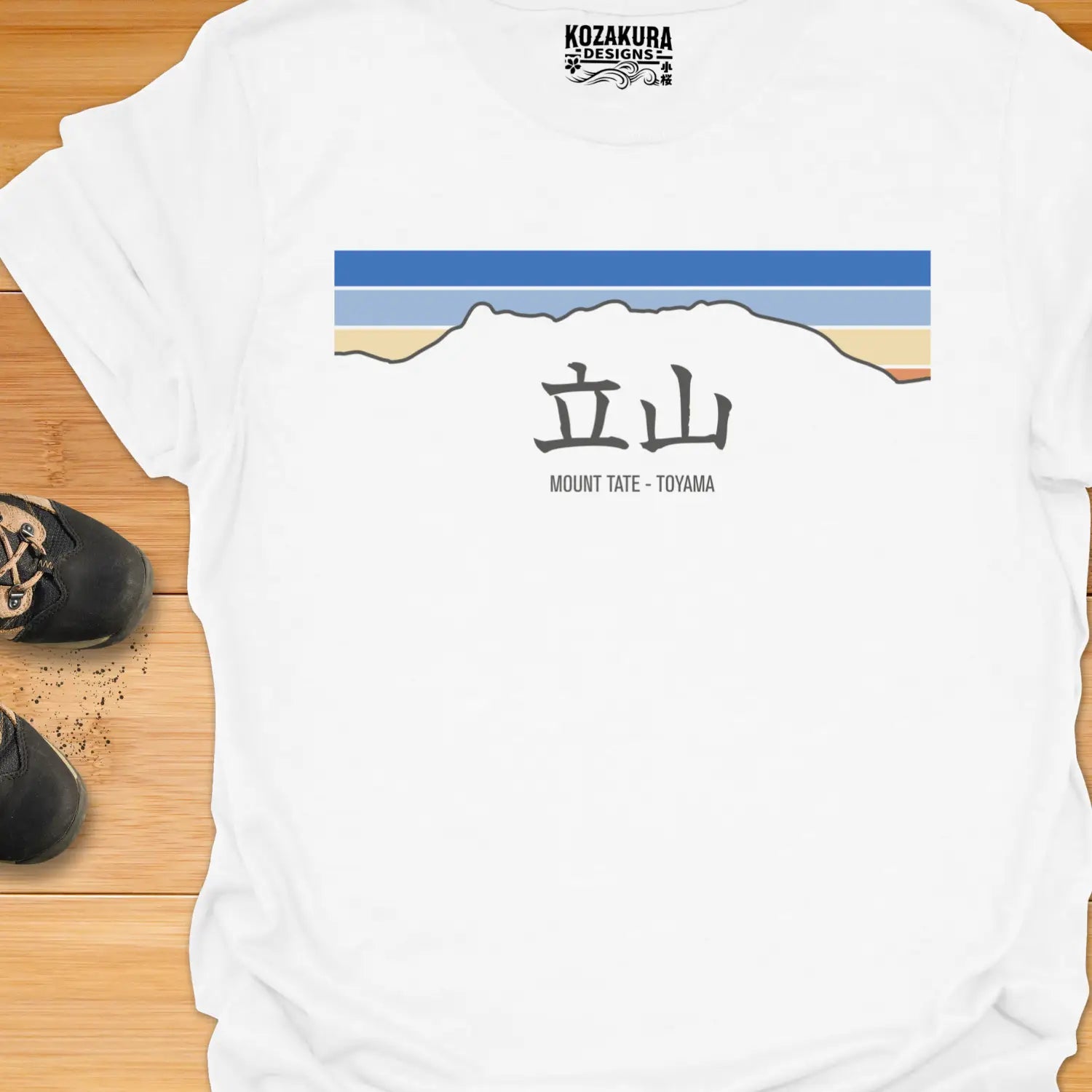 Explore Mount Tate's stunning scenery and deep spiritual roots with this Kanji design. Part of our Hiking Collection for adventurers and nature enthusiasts. 🏔️🌅✨