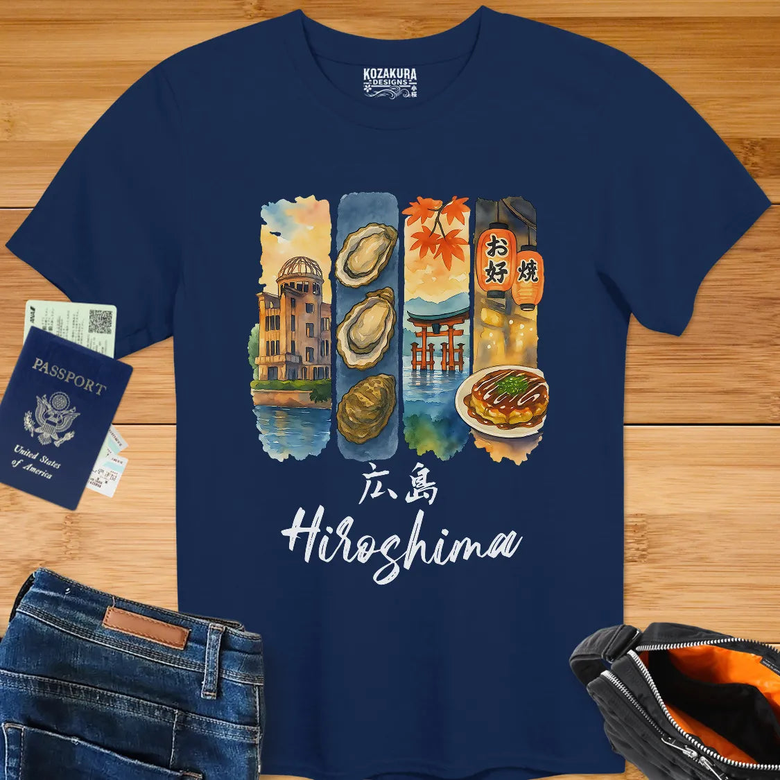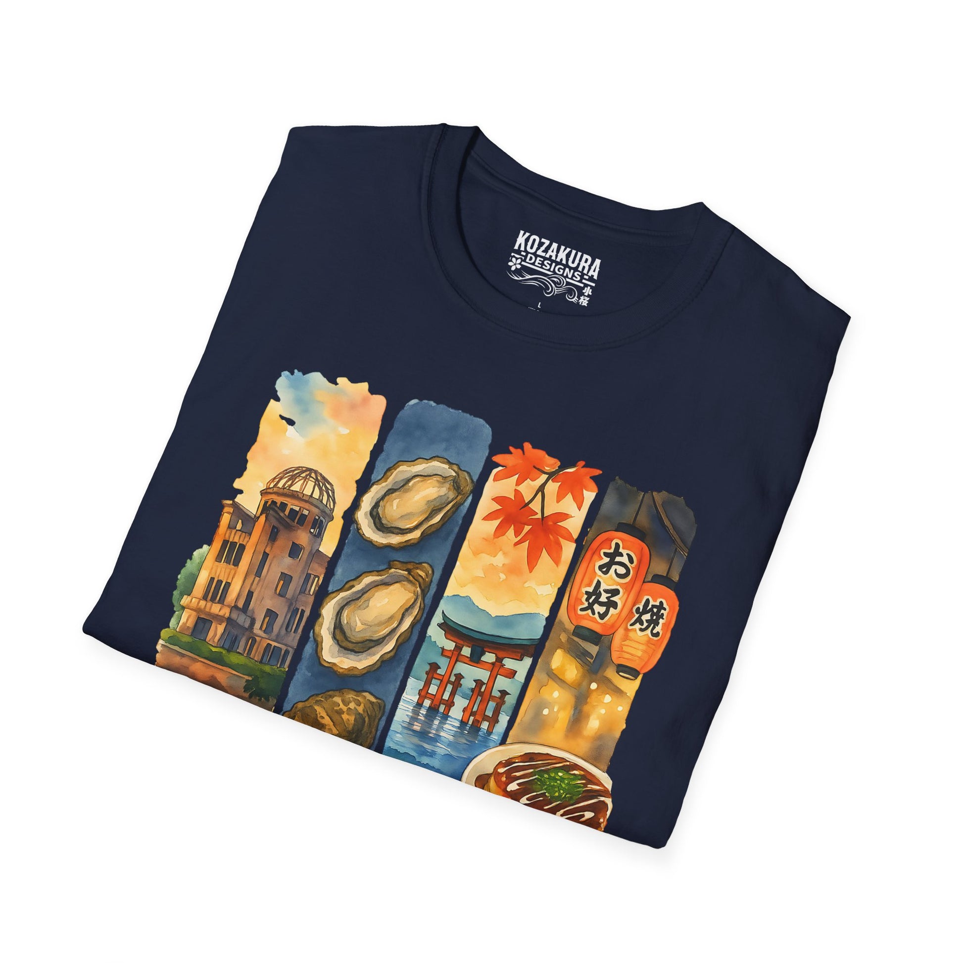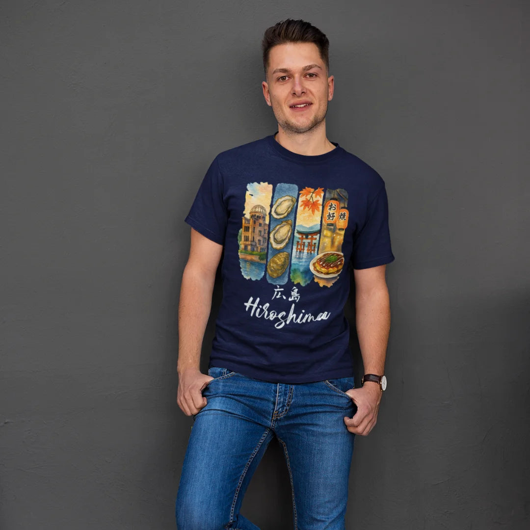 From floating torii gates to savory okonomiyaki, Hiroshima is a city of contrasts—peaceful, flavorful, and full of life. This 4-panel design captures its spirit one scene at a time, blending landmarks, culture, and memory into a wearable travel journal. Your postcard from the prefecture. 🗾🍜⛩️