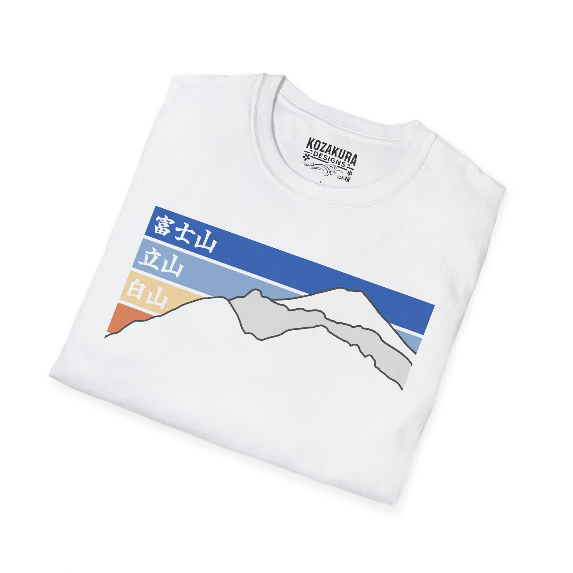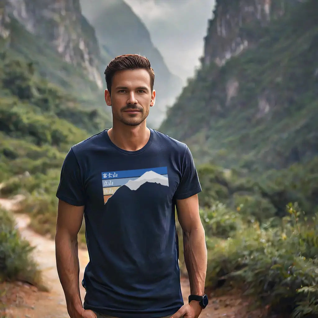 Get lost in Japan's Three Sacred Mountains--Mt. Fuji, Mt. Tate, and Mt. Haku--with this cool shirt! Showing off beauty, power, and spirituality, these peaks represent Japan's natural wonder. Perfect for explorers, globetrotters, and fans of Japanese culture, this shirt adds some sacred scenery to your everyday style.