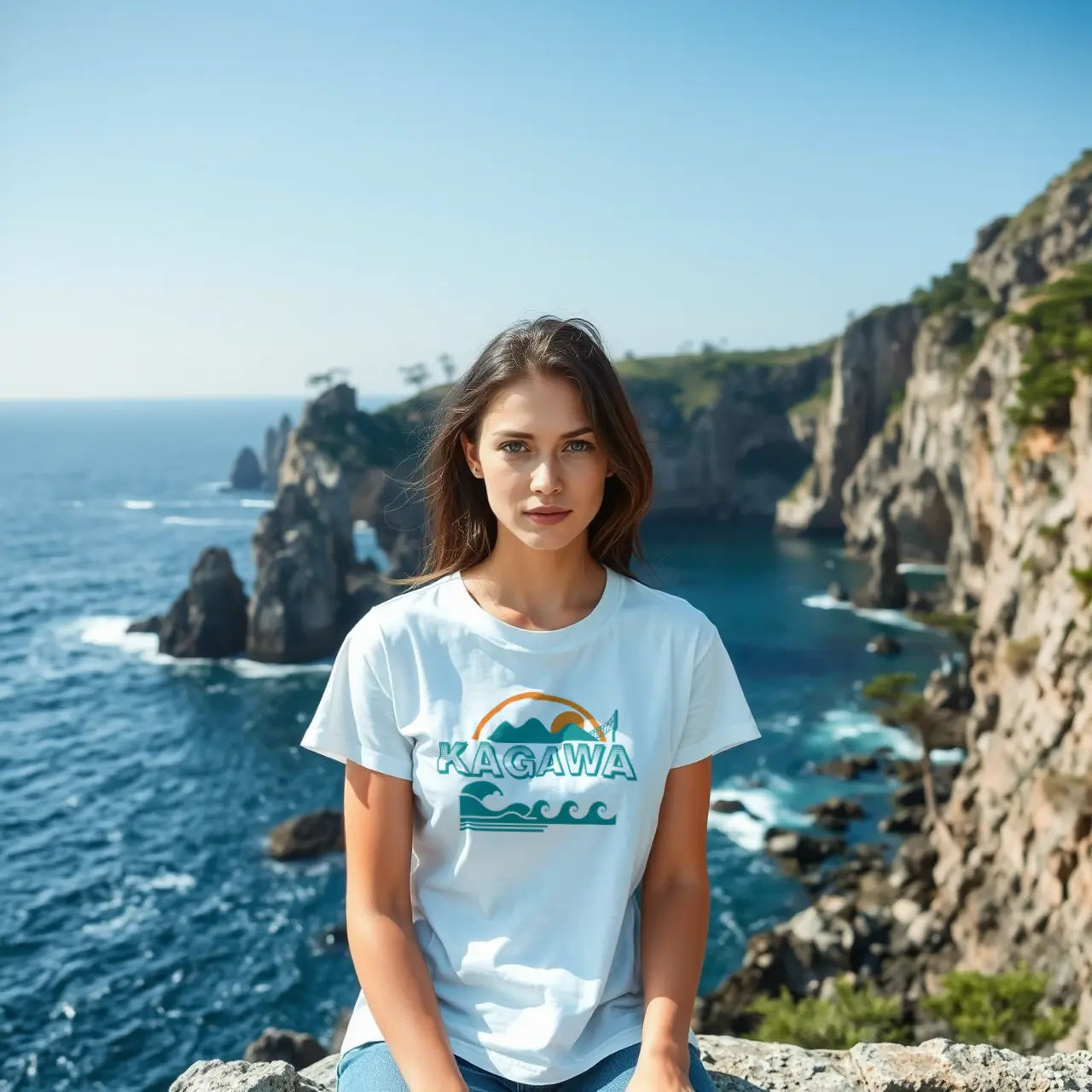 This retro-inspired design captures the coastal beauty of Kagawa with bold waves and a vibrant orange arch, symbolizing the setting sun over the serene waters of the Seto Inland Sea. Known for its picturesque beaches, islands, and tranquil atmosphere, Kagawa is a haven for those seeking relaxation and inspiration. Perfect for lovers of vintage aesthetics and Japan’s stunning seascapes. 🌊🌅✨